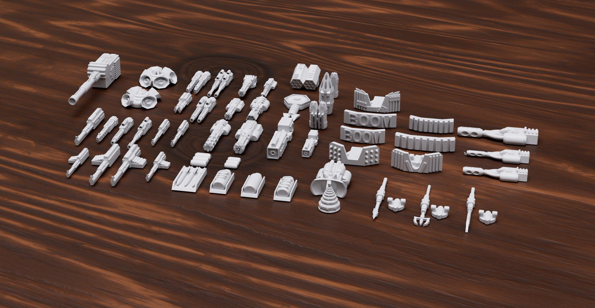 Gaslands Weapon Bitz Set – 50+ Upgrade Parts for Post-Apocalyptic Wargames – PLA or Resin – 20mm–1:64 Kitbash Compatible
